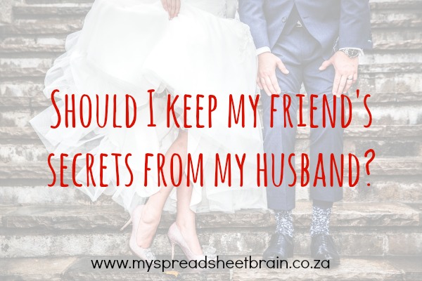 Many wives (it seems men don’t have this problem, yo) feel that confidence trumps everything else. They say: “If my friend asked me to keep it on the down low, then that’s exactly what I’m going to do! But one wonders if the same rule should apply if you are married since spouses should not have secrets from each other. Right?