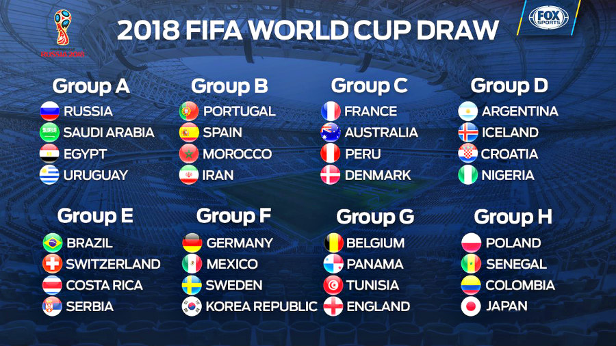 So, this is trivial, but in case you wanted to know how the first round of teams are split up: The 32 teams who have qualified are split into four-team groups. The groups are drawn from four pots – so that’s basically one team from each pot. Teams are actually placed in these pots according to their position in the Fifa world rankings for October. (So there’s a piece of information you’d never thought you’d need to know.) Russia (automatically put into pot one) is the only exception, since they are the host country. In case you’re curious, the line up for the pots are:
